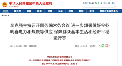 10月8日召开的国务院常务会议表示,进一步部署做好今冬明春电力和煤炭等供应,保障群众基本生活和经济平稳运行。此次会议罕见地提及“六保”这一去年疫情期间提出的重要精神,这意味着此次“能源供应”问题的站位相当高。