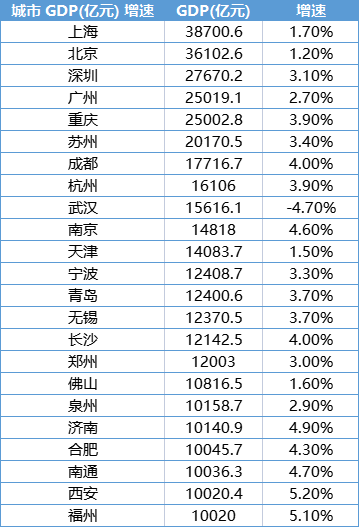 从2021年的数据来看,TOP 10城市分别为上海、北京、深圳、广州、重庆、苏州、成都、杭州、武汉、南京。其中,与2020年相比,上海和北京分别以4.32万亿元和4.03万亿元的经济体量成为国内进入4万亿元GDP行列的两座城市,深圳进入3万亿元GDP行列。